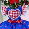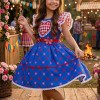 Vestido Mini Miss Junino Sertão Amor Caipira Azul Royal