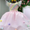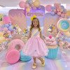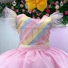 Vestido temático infantil Mini Miss, com busto em tons pastel e saia volumosa em tule rosa com pompons coloridos, criando um visual delicado e lúdico. Perfeito para diversos temas como: candy, doceria, circo, chuva de amores, chuva de bênçãos, jardim encantado, candy colors e arco-íris — ou seja, um único vestido que se adapta a várias propostas sem esforço. As mangas em tule leve criam um efeito suave e sofisticado, enquanto a saia rodada em camadas de tule rosa garante volume e movimento, deixando o look ainda mais encantador. O grande destaque fica por conta das aplicações de mini pompons coloridos distribuídos pela saia, adicionando um toque lúdico e divertido à peça. Cintura bem marcada, proporcionando um caimento impecável e valorizando a silhueta infantil com conforto. Ideal para festas, aniversários, sessões de fotos e momentos especiais onde o objetivo claramente é fazer todo mundo parar e olhar. Informações Importantes As medidas podem variar em até 2cm. Recomendamos sempre consultar a tabela de medidas antes da compra para evitar erros. Tecido 100% poliester Para um volume extra, indicamos o uso de saiote de armação, vendido separadamente na categoria Acessórios. Tiara e outros acessórios não acompanham o produto, mas estão disponíveis em nosso site. Calçado vendido separadamente, disponível na categoria Calçados