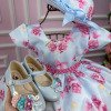 Confeccionado em tecido misto possui forro em poliéster e algodão para não incomodar a criança e proporcionando um caimento incrível e sofisticado, possui gola redonda, comprimento médio, mangas curtas, possui elástico nas costas para melhor ajuste, acabamento com lindo laço na parte posterior do vestido completa o look dos sonhos! * Medidas podem variar em até 4cm. * Caso queira o vestido mais armado, recomendamos o uso do saiote ou anágua de armação, disponível no nosso site na categoria acessórios.* Tiara vendida separadamente, disponível em nosso site na categoria acessórios. * Calçados vendido separadamente, disponível em nosso site na categoria calçados.* Obs: Acompanha Chapeu * LEMBRANDO QUE PODERA HAVER VARIAÇÃO DE TONALIDADE DO PRODUTO DEPENDENDO DA TELA DO SEU DISPOSITIVO