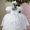 TECIDO LESE: 90% Poliester 10% AlgodãoConfeccionado em tecido misto possui forro em poliéster e algodão para não incomodar a criança e proporcionando um caimento incrível e sofisticado, possui gola redonda, comprimento médio, mangas curtas, contém, também, elástico nas costas para melhor ajuste, acabamento com lindo laço na parte posterior do vestido completa o look dos sonhos! * Medidas podem variar em até 4cm. * Caso queira o vestido mais armado, recomendamos o uso do saiote ou anágua de armação, disponível no nosso site na categoria acessórios. * Tiara vendida separadamente, disponível em nosso site na categoria acessórios. * Calçados vendido separadamente, disponível em nosso site na categoria calçados. * LEMBRANDO QUE PODERA HAVER VARIAÇÃO DE TONALIDADE DO PRODUTO DEPENDENDO DA TELA DO SEU DISPOSITIVO