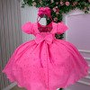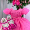 TECIDO LESE: 90% Poliester 10% AlgodãoConfeccionado em tecido misto possui forro em poliéster e algodão para não incomodar a criança e proporcionando um caimento incrível e sofisticado, possui gola redonda, comprimento médio, mangas curtas, contém, também, elástico nas costas para melhor ajuste, acabamento com lindo laço na parte posterior do vestido completa o look dos sonhos! * Medidas podem variar em até 4cm. * Caso queira o vestido mais armado, recomendamos o uso do saiote ou anágua de armação, disponível no nosso site na categoria acessórios. * Tiara vendida separadamente, disponível em nosso site na categoria acessórios. * Calçados vendido separadamente, disponível em nosso site na categoria calçados. * LEMBRANDO QUE PODERA HAVER VARIAÇÃO DE TONALIDADE DO PRODUTO DEPENDENDO DA TELA DO SEU DISPOSITIVO