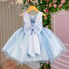 Confeccionado em tecido misto possui forro em poliéster e algodão para não incomodar a criança e proporcionando um caimento incrível e sofisticado, possui gola redonda, comprimento médio, mangas curtas, possui elástico nas costas para melhor ajuste, acabamento com lindo laço na parte posterior do vestido completa o look dos sonhos!