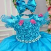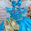 Confeccionado em tecido misto possui forro em poliéster e algodão para não incomodar a criança e proporcionando um caimento incrível e sofisticado, possui gola redonda, comprimento médio, mangas curtas, possui elástico nas costas para melhor ajuste, acabamento com lindo laço na parte posterior do vestido completa o look dos sonhos!