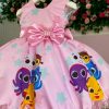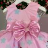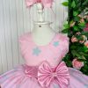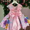 Confeccionado em tecido misto possui forro em poliéster e algodão para não incomodar a criança e proporcionando um caimento incrível e sofisticado, possui gola redonda, comprimento médio, mangas curtas, possui elástico nas costas para melhor ajuste, acabamento com lindo laço na parte posterior do vestido completa o look dos sonhos!