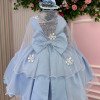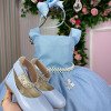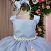 Confeccionado em tecido misto possui forro em poliéster e algodão para não incomodar a criança e proporcionando um caimento incrível e sofisticado, possui gola redonda, comprimento médio, mangas curtas, possui elástico nas costas para melhor ajuste, acabamento com lindo laço na parte posterior do vestido completa o look dos sonhos!