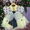 Confeccionado em tecido misto possui forro em poliéster e algodão para não incomodar a criança e proporcionando um caimento incrível e sofisticado, possui gola redonda, comprimento médio, mangas curtas, possui elástico nas costas para melhor ajuste, acabamento com lindo laço na parte posterior do vestido completa o look dos sonhos!