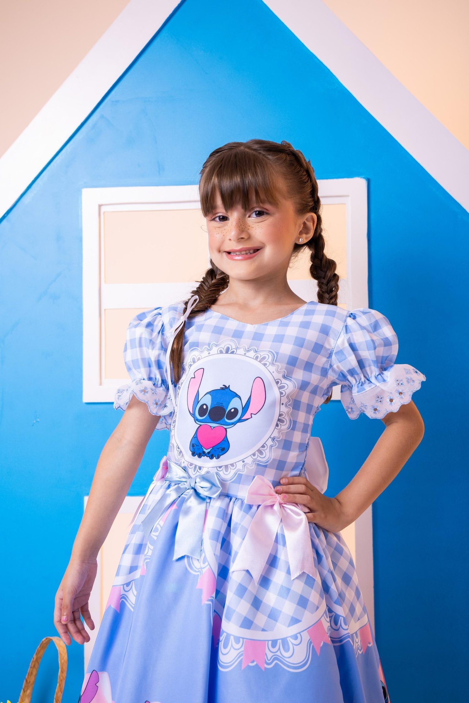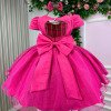 Confeccionado em tecido misto possui forro em poliéster e algodão para não incomodar a criança e proporcionando um caimento incrível e sofisticado, possui gola redonda, comprimento médio, mangas curtas, possui elástico nas costas para melhor ajuste, acabamento com lindo laço na parte posterior do vestido completa o look dos sonhos!