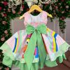 Confeccionado em tecido misto possui forro em poliéster e algodão para não incomodar a criança e proporcionando um caimento incrível e sofisticado, possui gola redonda, comprimento médio, mangas curtas, contém, também, elástico nas costas para melhor ajuste, acabamento com lindo laço na parte posterior do vestido completa o look dos sonhos!