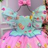 Confeccionado em tecido misto possui forro em poliéster e algodão para não incomodar a criança e proporcionando um caimento incrível e sofisticado, possui gola redonda, comprimento médio, mangas curtas, possui elástico nas costas para melhor ajuste, e acabamento com lindo laço na parte posterior do vestido completa o look dos sonhos!