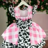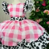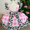 Confeccionado em tecido misto possui forro em poliéster e algodão para não incomodar a criança e proporcionando um caimento incrível e sofisticado, possui gola redonda, comprimento médio, mangas curtas, possui elástico nas costas para melhor ajuste, acabamento com lindo laço na parte posterior do vestido completa o look dos sonhos!