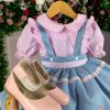 Composto por Salopete Jeans e Blusinha Xadrez na cor Rosa
