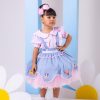 Confeccionado em tecido misto possui forro em poliéster e algodão para não incomodar a criança e proporcionando um caimento incrível e sofisticado, possui gola redonda, comprimento médio, mangas curtas, possui elástico nas costas para melhor ajuste, acabamento com lindo laço na parte posterior do vestido completa o look dos sonhos!