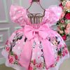Confeccionado em tecido misto possui forro em poliéster e algodão para não incomodar a criança e proporcionando um caimento incrível e sofisticado, possui gola redonda, comprimento médio, mangas curtas, possui elástico nas costas para melhor ajuste, acabamento com lindo laço na parte posterior do vestido completa o look dos sonhos!