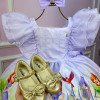 Confeccionado em tecido misto possui forro em poliéster e algodão para não incomodar a criança e proporcionando um caimento incrível e sofisticado, possui gola redonda, comprimento médio, mangas curtas, possui elástico nas costas para melhor ajuste, acabamento com lindo laço na parte posterior do vestido completa o look dos sonhos!