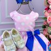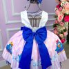 Confeccionado em tecido misto possui forro em poliéster e algodão para não incomodar a criança e proporcionando um caimento incrível e sofisticado, possui gola redonda, comprimento médio, mangas curtas, apliques de laço e perolás, contém, também, elástico nas costas para melhor ajuste, acabamento com lindo laço na parte posterior do vestido completa o look dos sonhos!