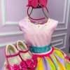 TECIDO MICROFIBRA 100% Confeccionado em tecido misto possui forro em poliéster e algodão para não incomodar a criança e proporcionando um caimento incrível e sofisticado, possui gola redonda, comprimento médio, mangas curtas, apliques de laço e perolás, contém, também, elástico nas costas para melhor ajuste. ROSINHA, ROSA, FLORZINHA, FLOR, COLORIDO, ARCO ÍRIS, * Medidas podem variar em até 4cm. * Caso queira o vestido mais armado, recomendamos o uso do saiote ou anágua de armação, disponível no nosso site na categoria acessórios. * Tiara vendida separadamente, disponível em nosso site na categoria acessórios. * Calçados vendido separadamente, disponível em nosso site na categoria calçados. * LEMBRANDO QUE PODERA HAVER VARIAÇÃO DE TONALIDADE DO PRODUTO DEPENDENDO DA TELA DO SEU DISPOSITIVO
