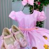 Confeccionado em tecido misto possui forro em poliéster e algodão para não incomodar a criança e proporcionando um caimento incrível e sofisticado, possui gola redonda, comprimento médio, mangas curtas, contém, também, elástico nas costas para melhor ajuste, acabamento com lindo laço na parte posterior do vestido completa o look dos sonhos!