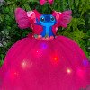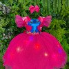 Vestido Temático Stitch com LED Um modelo encantador que une fofura e diversão! O vestido traz estampa exclusiva do Stitch no busto, com fundo delicado Floral. As mangas em camadas dão um charme extra e a saia rodada com uma camada de tule com glitter, deixando o visual ainda mais mágico. O grande diferencial são as luzes de LED embutidas na saia, que brilham e tornam a peça ainda mais especial para festas, apresentações e momentos inesquecíveis. Atenção: Esse modelo não pode ser lavado normalmente, apenas lavagem a seco para preservar o sistema de LED. No interruptor do LED, vem uma tag branca de segurança, que impede o acionamento durante o transporte. Para usar, basta retirá-la. Tecido tafeta e tule glitter 100% poliester Informações Importantes As medidas podem variar em até 2cm. Recomendamos sempre consultar a tabela de medidas antes da compra para evitar erros. Para um volume extra, indicamos o uso de saiote de armação, vendido separadamente na categoria Acessórios. Tiara e outros acessórios não acompanham o produto, mas estão disponíveis em nosso site. Calçado vendido separadamente, disponível na categoria Calçados. As cores do produto podem sofrer variações de tonalidade conforme a configuração da tela do seu dispositivo.