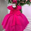 TECIDO 100% POLIÉSTER   Confeccionado em tecido misto possui forro em poliéster e algodão para não incomodar a criança e proporcionando um caimento incrível e sofisticado, possui gola redonda, comprimento médio, mangas curtas,  contém, também, elástico nas costas para melhor ajuste, acabamento com lindo laço na parte posterior do vestido completa o look dos sonhos!   * Medidas podem variar em até 2cm. * Caso queira o vestido mais armado, recomendamos o uso do saiote ou anágua de armação, disponível no nosso site na categoria acessórios. * Tiara vendida separadamente, disponível em nosso site na categoria acessórios. * Calçados vendido separadamente, disponível em nosso site na categoria calçados.     * LEMBRANDO QUE PODERA HAVER VARIAÇÃO DE TONALIDADE DO PRODUTO DEPENDENDO DA TELA DO SEU DISPOSITIVO