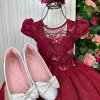 Confeccionado em tecido misto possui forro em poliéster e algodão para não incomodar a criança e proporcionando um caimento incrível e sofisticado, possui gola redonda, comprimento médio, mangas curtas, possui elástico nas costas para melhor ajuste, acabamento com lindo laço na parte posterior do vestido completa o look dos sonhos!