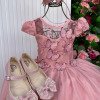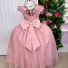 Confeccionado em tecido misto possui forro em poliéster e algodão para não incomodar a criança e proporcionando um caimento incrível e sofisticado, possui gola redonda, comprimento médio, mangas curtas, possui elástico nas costas para melhor ajuste, acabamento com lindo laço na parte posterior do vestido completa o look dos sonhos!