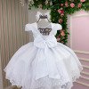 TECIDO 100% POLIÉSTER Confeccionado em tecido misto possui forro em poliéster e algodão para não incomodar a criança e proporcionando um caimento incrível e sofisticado, possui gola redonda, comprimento médio, mangas curtas, contém, também, elástico nas costas para melhor ajuste, acabamento com lindo laço na parte posterior do vestido completa o look dos sonhos! * Medidas podem variar em até 2cm. * Caso queira o vestido mais armado, recomendamos o uso do saiote ou anágua de armação, disponível no nosso site na categoria acessórios. * Tiara vendida separadamente, disponível em nosso site na categoria acessórios. * Calçados vendido separadamente, disponível em nosso site na categoria calçados. * LEMBRANDO QUE PODERA HAVER VARIAÇÃO DE TONALIDADE DO PRODUTO DEPENDENDO DA TELA DO SEU DISPOSITIVO