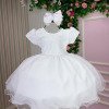 TECIDO 100% POLIÉSTER Confeccionado em tecido misto possui forro em poliéster e algodão para não incomodar a criança e proporcionando um caimento incrível e sofisticado, possui gola redonda, comprimento médio, mangas curtas, contém, também, elástico nas costas para melhor ajuste, acabamento com lindo laço na parte posterior do vestido completa o look dos sonhos! * Medidas podem variar em até 2cm. * Caso queira o vestido mais armado, recomendamos o uso do saiote ou anágua de armação, disponível no nosso site na categoria acessórios. * Tiara vendida separadamente, disponível em nosso site na categoria acessórios. * Calçados vendido separadamente, disponível em nosso site na categoria calçados. * LEMBRANDO QUE PODERA HAVER VARIAÇÃO DE TONALIDADE DO PRODUTO DEPENDENDO DA TELA DO SEU DISPOSITIVO