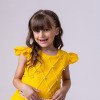 Confeccionado em tecido misto possui forro em poliéster e algodão para não incomodar a criança e proporcionando um caimento incrível e sofisticado, possui gola redonda, comprimento médio, mangas curtas, contém, também, elástico nas costas para melhor ajuste, acabamento com lindo laço na parte posterior do vestido completa o look dos sonhos!