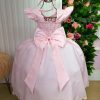 Confeccionado em tecido misto possui forro em poliéster e algodão para não incomodar a criança e proporcionando um caimento incrível e sofisticado, possui gola redonda, comprimento médio, mangas curtas, contém, também, elástico nas costas para melhor ajuste, acabamento com lindo laço na parte posterior do vestido completa o look dos sonhos!