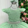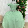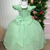 Confeccionado em tecido misto possui forro em poliéster e algodão para não incomodar a criança e proporcionando um caimento incrível e sofisticado, possui gola redonda, comprimento médio, mangas curtas, contém, também, elástico nas costas para melhor ajuste, acabamento com lindo laço na parte posterior do vestido completa o look dos sonhos!