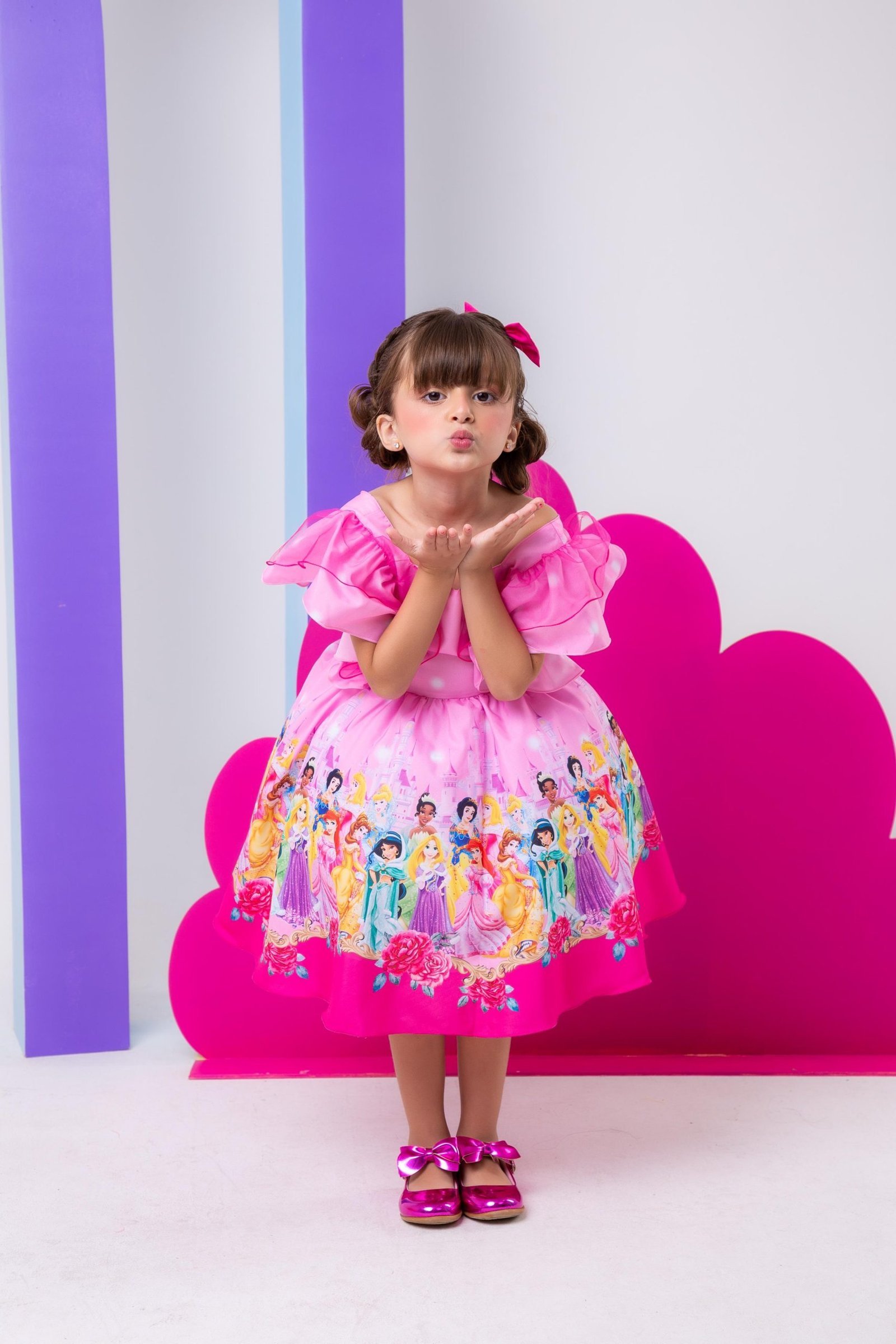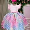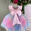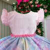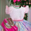 Confeccionado em tecido misto possui forro em poliéster e algodão para não incomodar a criança e proporcionando um caimento incrível e sofisticado, possui gola redonda, comprimento médio, mangas curtas, contém, também, elástico nas costas para melhor ajuste, acabamento com lindo laço na parte posterior do vestido completa o look dos sonhos!
